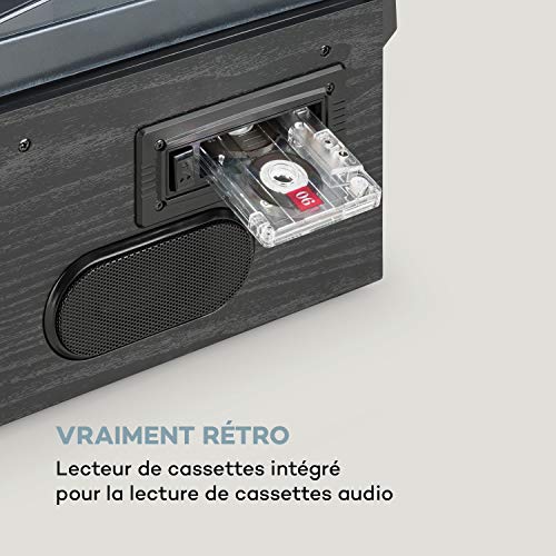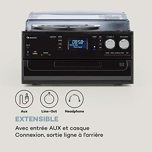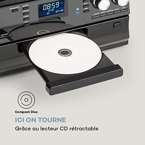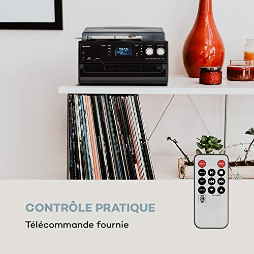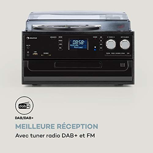 AUNA Oakland – Chaîne stéréo compacte, Tuner Radio Dab+/FM, Bluetooth, Platine Vinyle, Entraînement par Courroie 33/45/78 TR/Min, Lecteur CD, Platine Cassette, Lecteur MP3