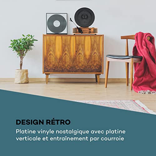 A LA VERTICALE: Un autre point fort est la construction verticale inhabituelle du disque vinyle. Pendant la lecture, vous pouvez voir le vinyle tourner, ce qui fait de l’appareil un véritable accroche-regard.